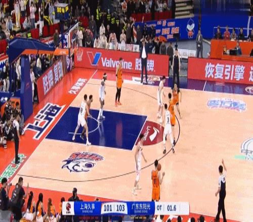 下半场双方持续拉锯,第四节还剩13秒广东领先4分,上海凭借哈维抢断上篮拖入加时,加时赛最后时刻广东领先2分,胡明轩关键罚球竞两罚全失,比赛最后1.6秒,上海最后一攻哈维接球极限超远三分直接绝杀,最终上海104-103广东,将大比分扳至1-1。