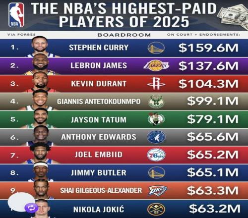最近Boardroom整理了一份“2025年NBA球员总收入(场上收入+代言)前十”榜单,库里、詹姆斯、杜兰特这些名字都在其中。最直观的反差是:同样都在联盟里打球,榜首的数字已经到了“一个人顶一批人”的量级,而从第4名往后又是另一种梯队。名单里既有年纪不小但商业盘子依旧很稳的老面孔,也有正在被市场快速押注的年轻核心,同时也能看到一些大家以为会出现、结果没进前十的熟悉名字。数据截至撰文时间2025年12月28日。