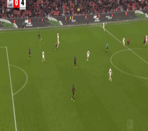 昨天多特客场压哨绝平法兰克福,大概率要被拜仁拉大到2位数的分差,今天勒沃库森倒是有机会缩小和多特的差距,没想到他们却在自家的拜耳竞技场被揍了一顿。开场后斯图加特反客为主展开高效进攻,仅仅6分钟,斯图加特中后场快速反击,连续的精妙配合,昂达夫中圈左侧接球往前推进后送出手术刀式直塞,勒威林插上突入禁区获得单刀良机,面对出击的门将弗莱肯,勒威林撩射得手,斯图加特1:0取得梦幻开局。