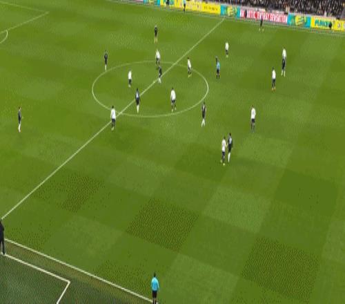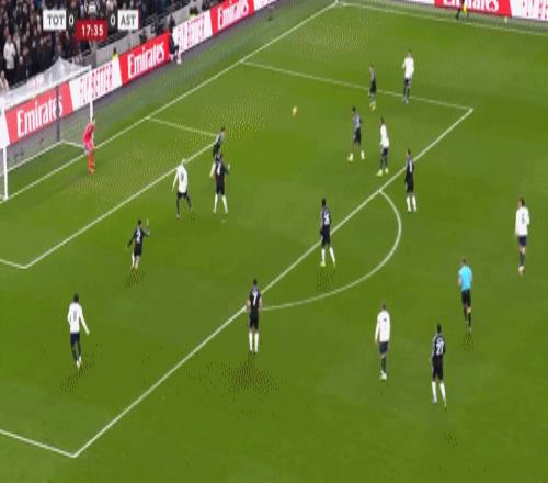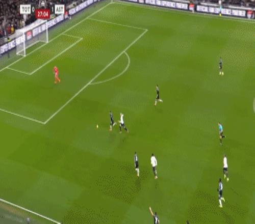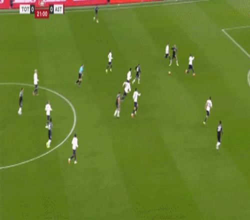 第45+3分钟,布恩迪亚脚后跟做球,罗杰斯破门,维拉2-0热刺
